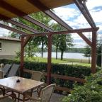 • überdachte Terrasse mit Seeblick und Gartenmöbeln
