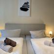 • 2 Räume: Schlaf-, Wohnzimmer mit TV, Schlafcouch, Safe, Essecke Bad: DU/ WC, Fön