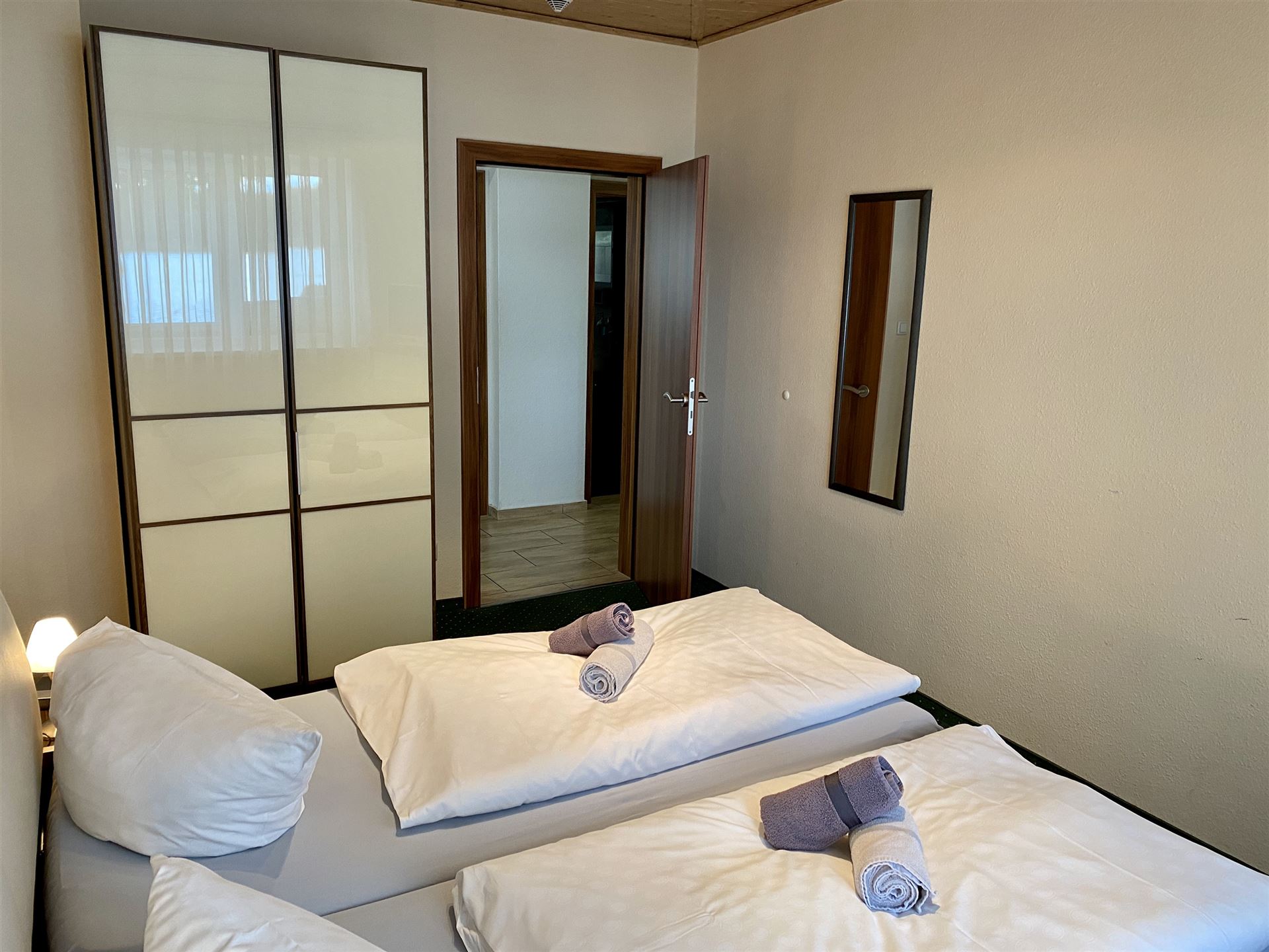 • 2 Räume: Schlaf-, Wohnzimmer mit TV, Schlafcouch, Safe, Essecke Bad: DU/ WC, Fön
